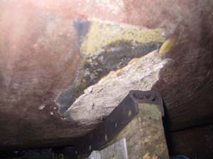 laminieren. Alter Sturmschaden durch Ast. |
