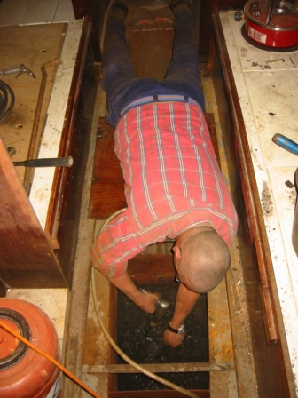 festgestellt: Der Kasten um den Ruderwellenaustritt ist Morsch wie ein