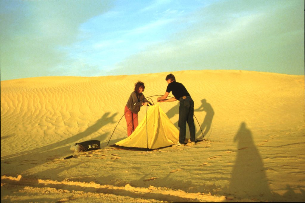 übernachten wir in den Dünen. Erste Sandfahrt. Ging ganz gut bis auf Tom der